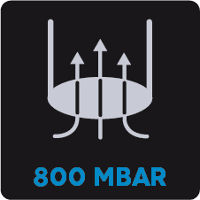De pomp genereert een maximale onderdruk van 0,8 bar. Ter bescherming van de pomp, schakelt deze automatisch uit bij het bereiken van een onderdruk van 0,8 bar. Zodra er onderdruk verloren gaat, wordt de pomp opnieuw geactiveerd om de onderdruk te herstellen.